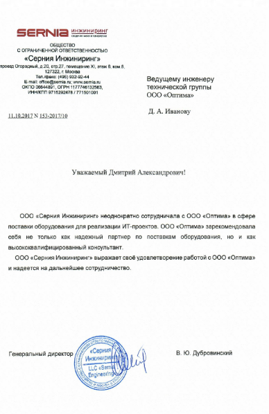 ООО "Оптима" старается удовлетворить все требования заказчика, гарантируя профессиональный подход своих специалистов к любому вопросу, использование самого современного оборудования и технологий, а также комплексный подход к реализации проектов любого масштаба и уровня сложности. Доказательством активного развития компании является постоянное расширение производства и сотрудничество с новыми поставщиками оборудования, поиск новых направлений деятельности и применение передовых технологий.